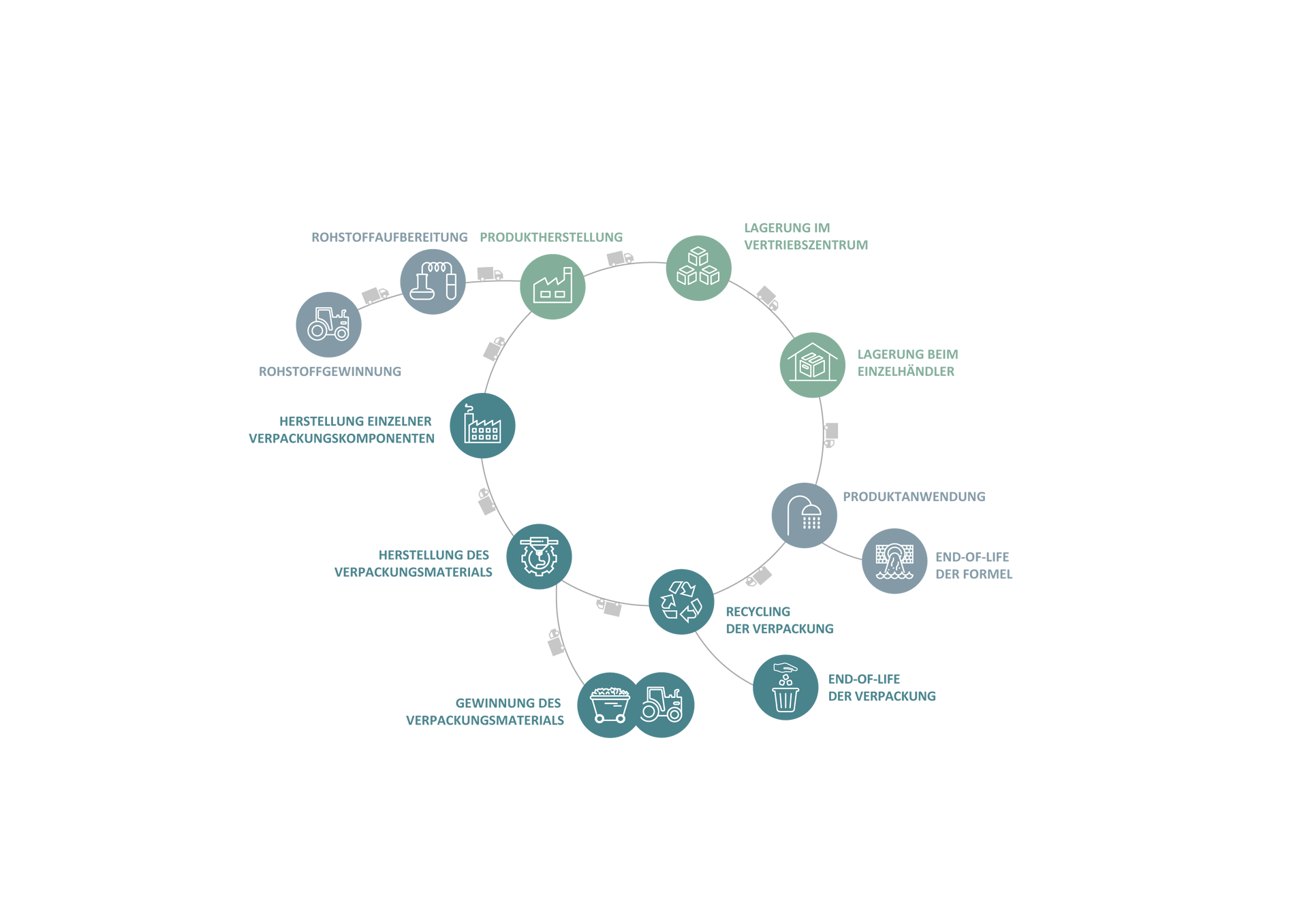 Die Auswirkungen werden in jeder Phase des Lebenszyklus eines Produkts gemessen und berechnet, indem nicht nur die Beschaffung, die Produktion und der Transport, sondern auch die Nutzung durch den Verbraucher und die Wiederverwertbarkeit der Verpackung berücksichtigt werden.