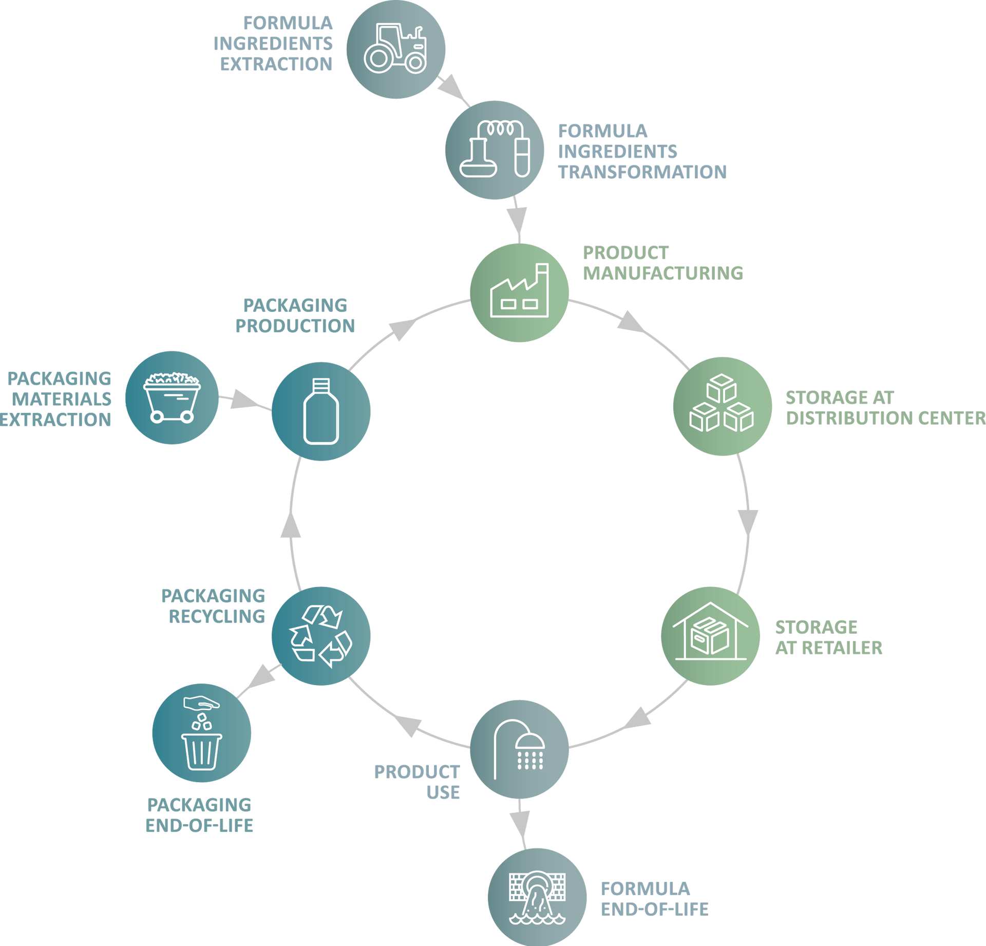 For cosmetics, the carbon footprint and the water footprint are two key elements of a product's Environmental Impact.