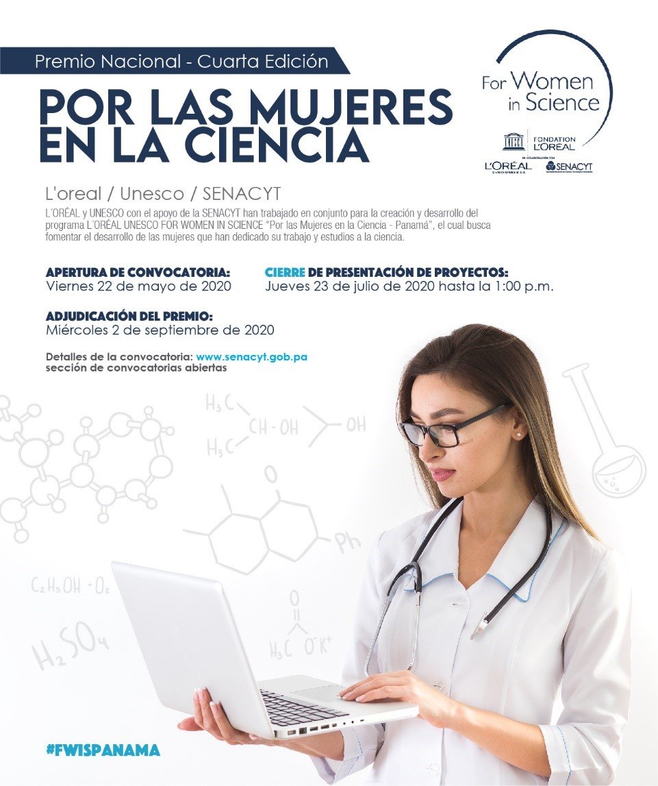 Ciudad de Panama, mayo de 2020.- Desde el 22 de mayo al 23 de julio del 2020 se encontrarán abiertas las postulaciones al Premio L'Oréal - UNESCO For Women in Science, que, como en años anteriores, premiará a una científica panameña de excelencia que cursa estudios doctorales o post doctorales en Ciencias de las Vida, de la Materia, Ciencias Físicas, Matemáticas o Informáticas. El premio corresponde al monto de B. 10.000 destinados a apoyar su carrera científica.