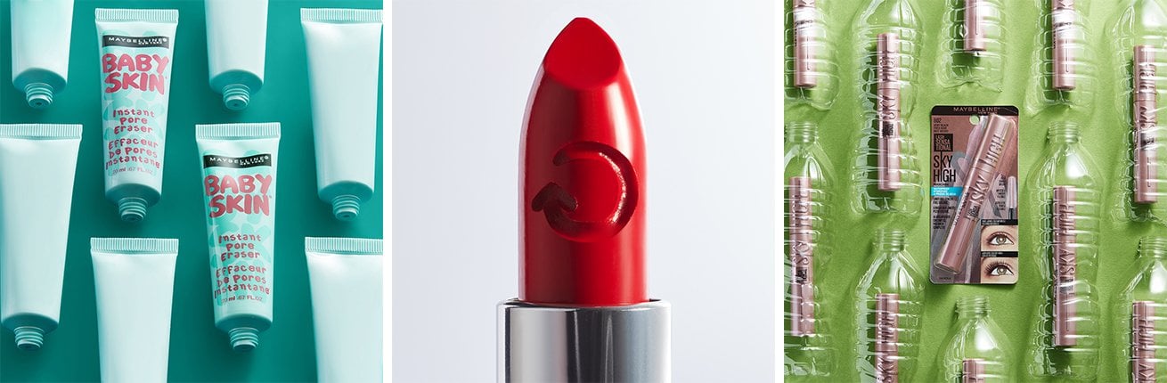 100% des packagings des produits Maybelline seront désormais faits à partir de plastique recyclé. |