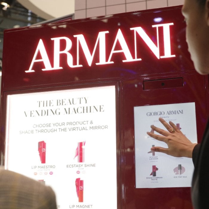 Armani beauty Vending Machine permet aux utilisateurs d'essayer et de se procurer nos best-sellers de maquillage en un instant en boutique.