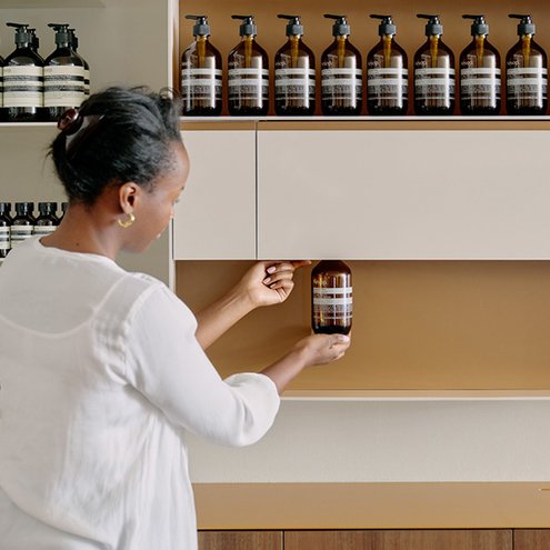 Every Aesop store is designed as an expression of its community and surrounds, envisioned by an in-house store design team―sometimes collaborating with external designers and architects. Within these environments, consultants provide personalised recommendations with warmth, integrity and generosity: every gesture is thoughtfully composed to create an environment of tranquility and curiosity.;