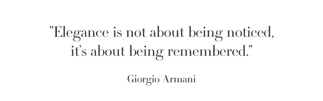 From the use of carefully selected materials to the dialogue between the elements of nature and its timelessness, Giorgio Armani’s creations convey values of simplicity and durability.