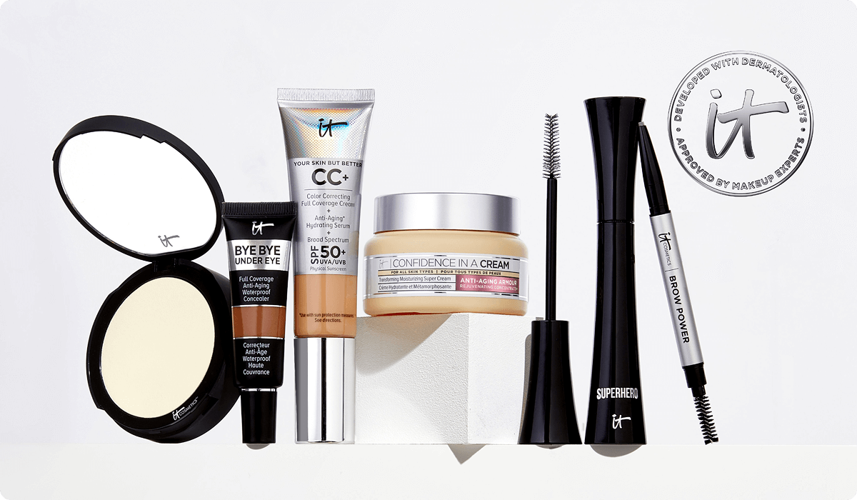 En tant que marque de maquillage hybride originale, résoudre les problèmes de peau est au cœur de tout ce que nous faisons. Notre maquillage infusé de soins de la peau et nos soins de la peau axés sur les solutions offrent de vrais résultats pour une confiance qui change la vie. Développé avec des dermatologues et des chirurgiens plasticiens, et approuvé par des experts en maquillage, IT Cosmetics aide les personnes à passer de l'insécurité à une confiance totale – et c'est ce qui fait de nous la marque de la transformation.