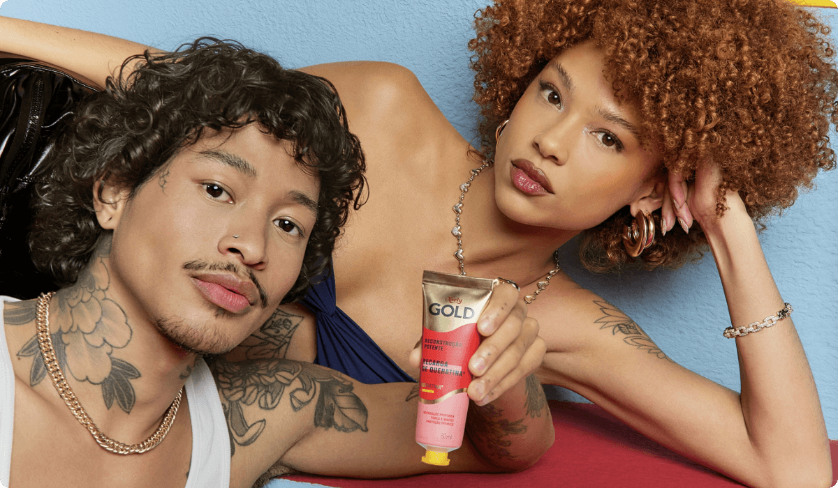 Niely Gold résonne auprès de la femme brésilienne moderne, embrassant l'énergie des cultures urbaines et périphériques. Notre récent relancement, guidé par le message percutant "Tá chocada? É Niely Gold" (Vous êtes choquée ? C'est Niely Gold), renforce notre objectif de renouer avec les femmes brésiliennes et de regagner leur cœur grâce à des performances fiables. Grâce à une recherche avancée et à la technologie L'Oréal, nous proposons des solutions capillaires de haute qualité et très performantes, conçues pour réparer, adoucir et protéger tous les types de cheveux. Nous célébrons la polyvalence des femmes brésiliennes, en veillant à ce que chaque mèche reflète leur style et leur confiance uniques.