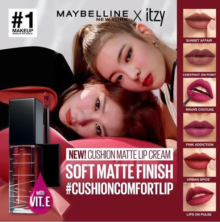 ITZY juga sudah mencoba langsung Maybelline Cushion Matte Lip Cream ini. Shade yang digunakan Lia adalah Urban Spice, yang memberikan kesan elegan, sedangkan Chaeryong menggunakan shades Sunset Affair yang membuatnya tampak fresh dan cocok untuk dipadupadankan dengan outfit apa saja.