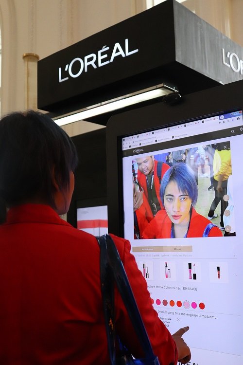 Selain menjadi pembicara, L'Oréal Indonesia juga berkesempatan untuk membuka booth bagi para peserta dari Indonesia Millenial Summit loh! Pada booth tahun ini selain para peserta dapat mencoba langsung beberapa produk L'Oréal, peserta juga diberikan kesempatan untuk mencoba salah satu teknologi L'Oréal yang belum lama keluar yaitu L'Oréal Modiface! Para peserta kaget dan antusias melihat teknologi baru yang menawarkan untuk mencoba makeup secara virtual. Bukan hanya peserta yang berhenti dan mencoba teknologi ini, pak Sandiaga Uno Wakil Gubernur DKI Jakarta juga sempat datang dan mencoba teknologi ini loh!