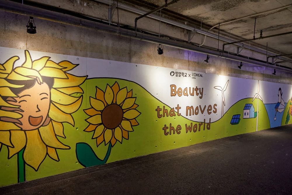 벽화는 ‘지속가능한 아름다움’과 ‘환경보호’를 주제로 밀알학교 학생들의 작품을 바탕으로 구성되었으며, 밀알학교에 재학 중인 학생 10명도 함께 벽화 그리기 활동에 동참에 의미를 더했다.