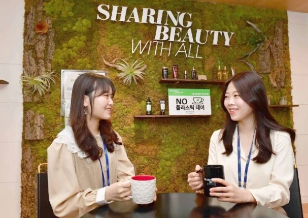 [사진 I] 로레알코리아는 4월 22일(월) 지구의 날을 맞아 삼성동 본사 내 카페에서 ‘노 플라스틱 데이(#NoPlasticDay)’ 행사를 진행했다. 이번 행사는 로레알그룹의 지속가능경영 프로젝트 ‘Sharing Beauty With All’의 일환으로, 임직원들은 환경보호를 위해 플라스틱 컵 대신 개인 머그컵에 음료를 받아가며 환경보호 의미를 되새기는 시간을 가졌다. |